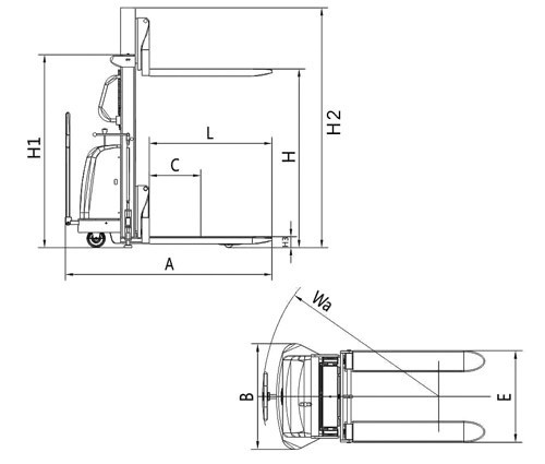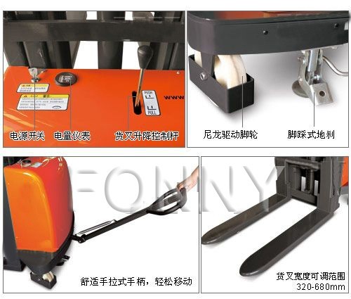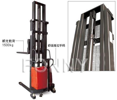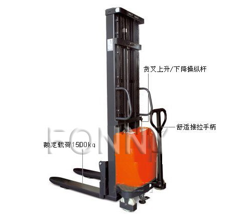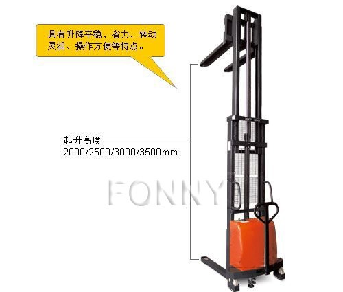 • 具有裝卸和短距離運(yùn)輸貨物功能的兩用半電動堆高車;