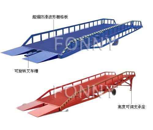 移動式液壓登車橋是與叉車配合使用的貨物裝卸輔助設(shè)備,可根據(jù)汽車車廂的高低調(diào)節(jié)高度,叉車可以直接通過本設(shè)備駛?cè)胲噹麅?nèi)部進(jìn)行貨物的批量裝卸,僅需單人作業(yè),即可實現(xiàn)貨物的快速裝卸。它使企業(yè)減少大量勞動力,提高工作效率,獲取經(jīng)濟(jì)效益。