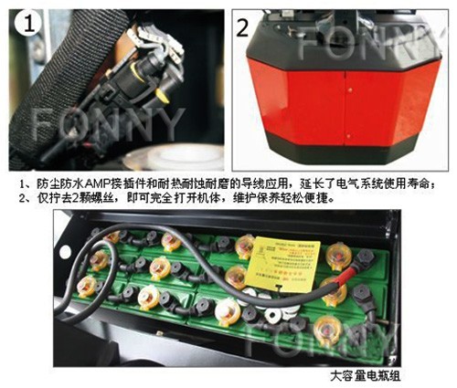 ·免維護(hù)AC驅(qū)動電機(jī),大扭矩,爬坡能力強(qiáng),大牽引力,動力強(qiáng)勁,確保車子在不平整的路面和斜坡上依然能平穩(wěn)行駛,電瓶使用壽命更長。