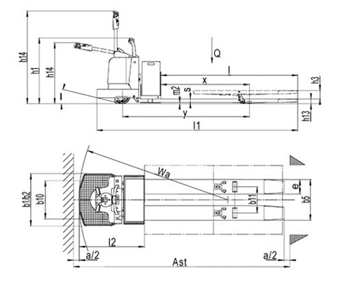 貨叉下降后高度(h13) |