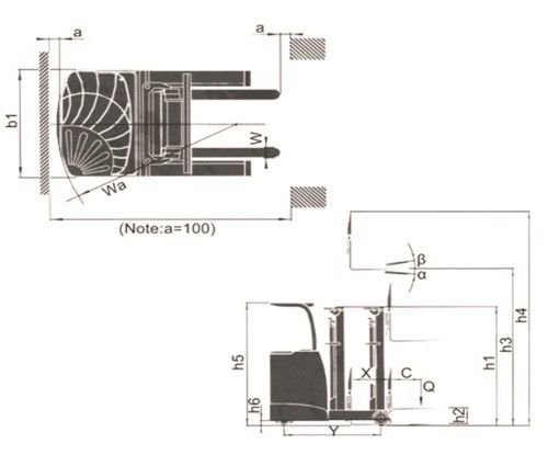 門架縮回時(shí)高度(h1) |
