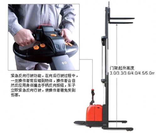 ③ 手柄緊急反向按鈕,有效預(yù)防操作人員受到意外傷害;