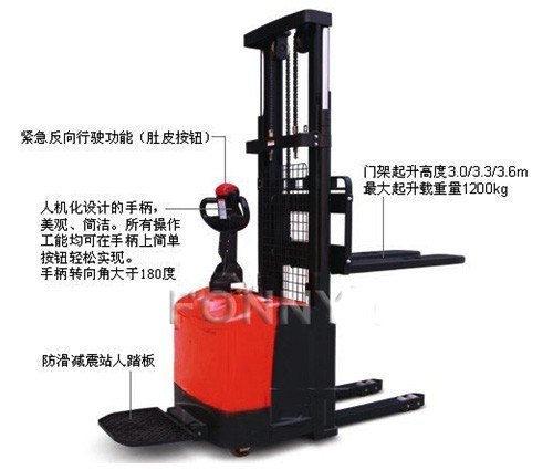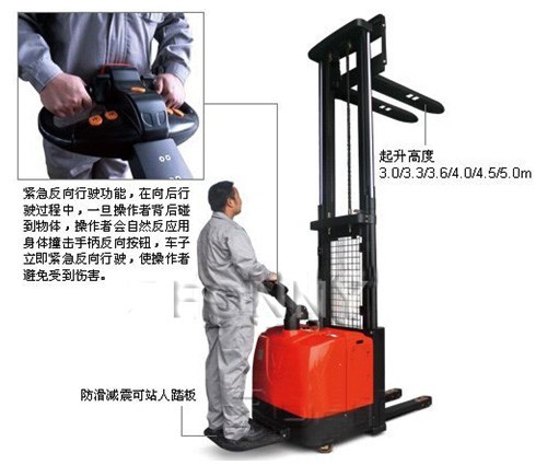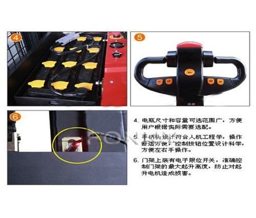 • 緊急反向行駛功能,在向后行駛過程中,一旦操作者背后碰到物體,操作者會自然反應(yīng)用身體撞擊手柄反向按鈕,車子立即緊急反向行駛,使操作者避免受到傷害。