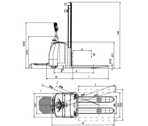 通道寬度,帶1.0×1.2m托盤(Ast ) |