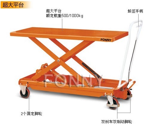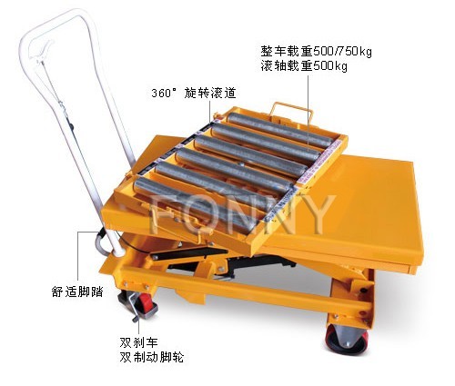 • 通過腳踏式液壓泵工作,方便地使平臺(tái)起升至所需高度;
