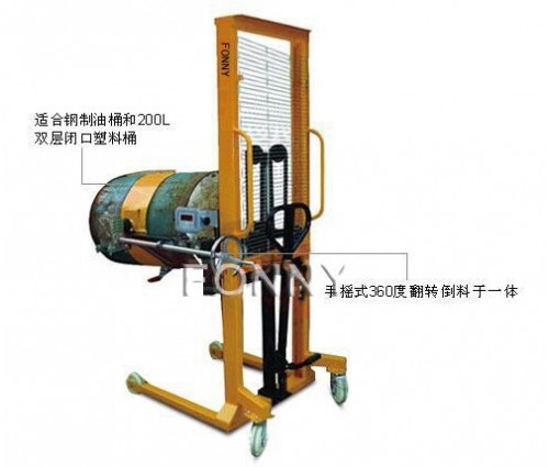 ·適合鋼制油桶和200L雙層閉口塑料桶的搬運、堆高、360度翻轉(zhuǎn)倒料于一體;
